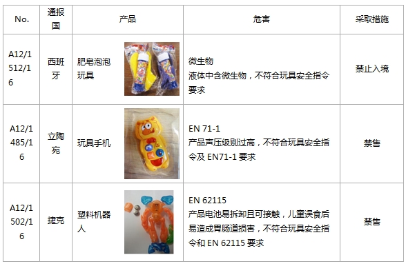 2.本月共通报36例违反玩具安全指令(2009/48/EC)的产品,其中34例产品不符合EN71-1要求而被通报,1例不符合EN62115要求、1例微生物超标。部分示例如下: