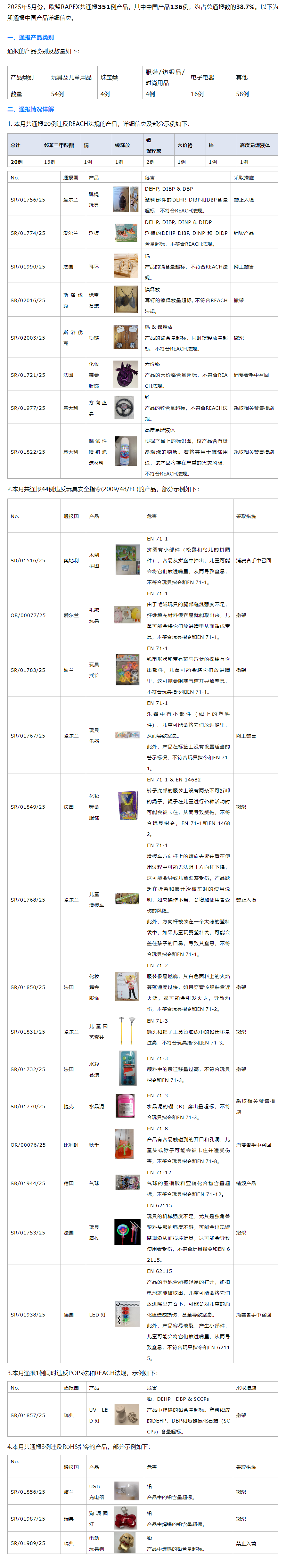 欧盟RAPEX系统通报--2025年5月