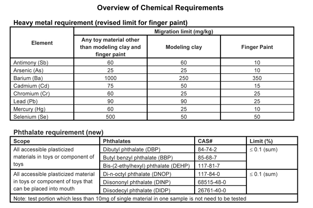 The Standardization Administration of China (SAC) notified the World Trade Organization (WTO) of proposed revisions to its toy safety standard (GB 6675). GB 6675 is proposed to be split into four separate standards and below is an overview of major changes in chemical requirements. The proposed date of entry into force is 6 months after adoption of the standards.