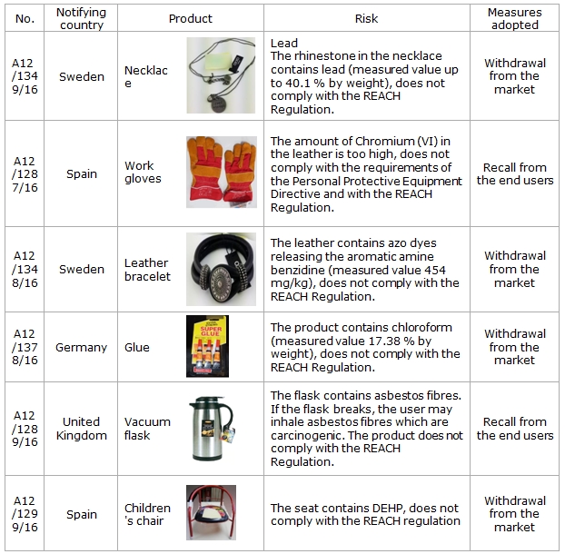 1) 32 cases of products that do not comply with the requirements of REACH were notified. Following are the detail information and part of examples.