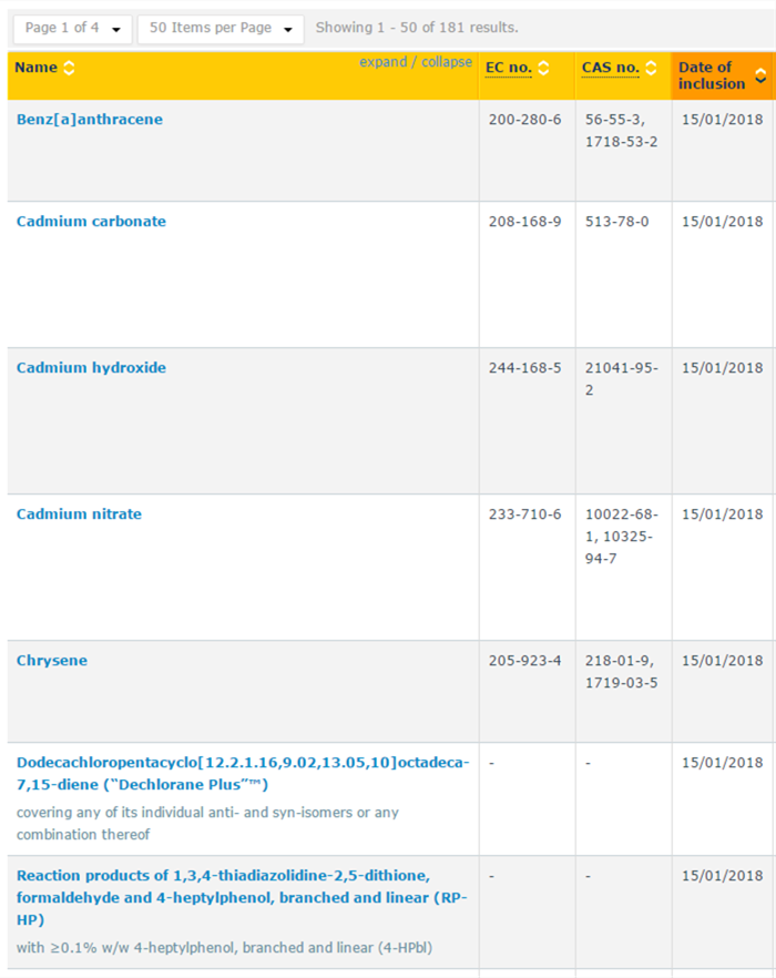 On 15th January 2018, ECHA added 7 new substances to SVHC candidate list, which now contains 181 substances in total.