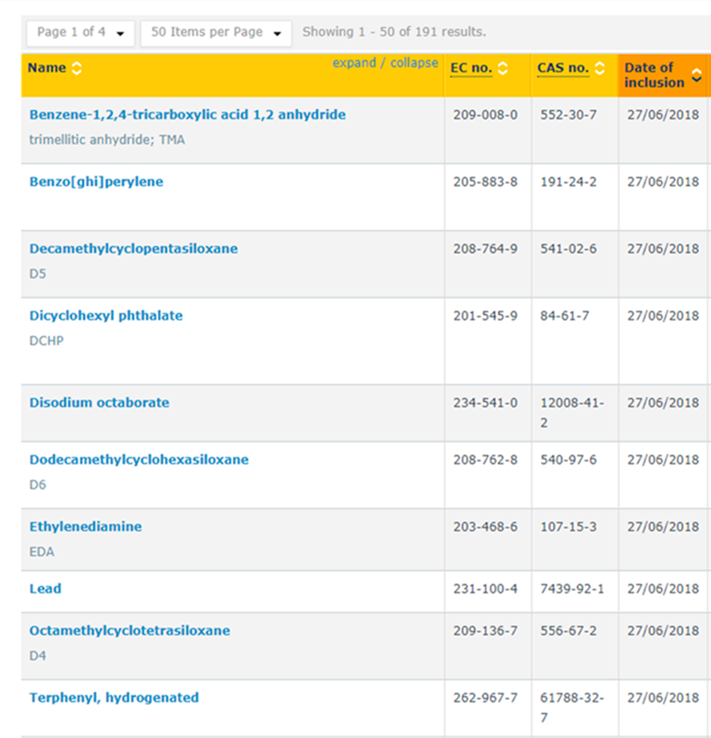 On 27th June 2018, ECHA added 10 new substances to SVHC candidate list, which now contains 191 substances in total.