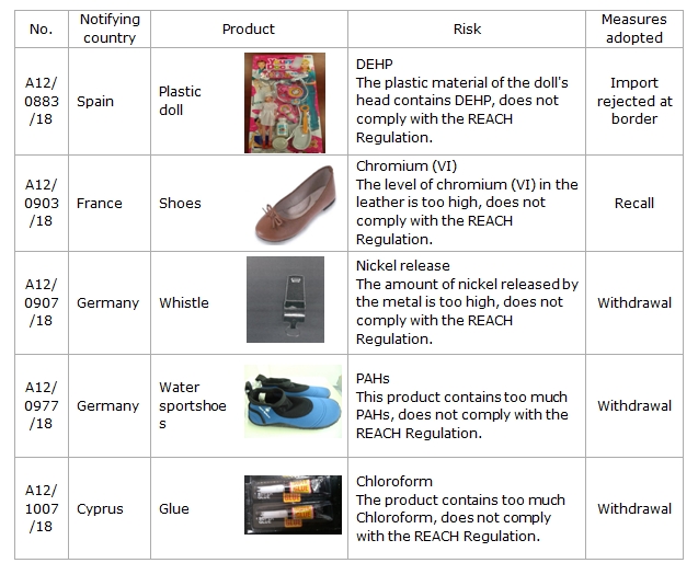 1) 17 cases of products that do not comply with the requirements of REACH were notified. Following are the detail information and part of examples.