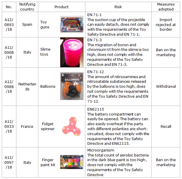 2)54 cases of products that do not comply with the requirements of the Toy Safety Directive were notified. Following are the detail information and part of examples.
