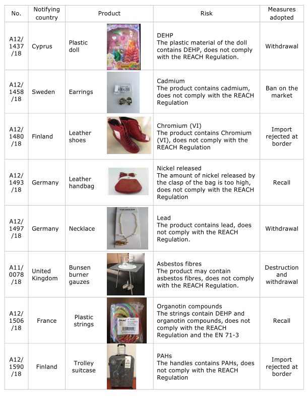 1) 28 cases of products that do not comply with the requirements of REACH were notified. Following are the detail information and part of examples.