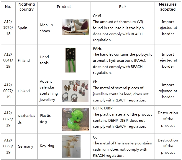 1) 25 cases of products that do not comply with the requirements of REACH were notified. Following are the detail information and part of examples.