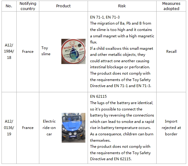 2) 30 cases of products that do not comply with the requirements of the Toy Safety Directive were notified. Following are the detail information and part of examples.