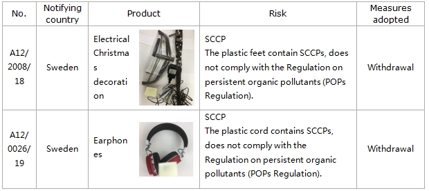 3) 2 products that do not comply with the regulation on persistent organic pollutants (POP Regulation) were notified. Below the detail information.