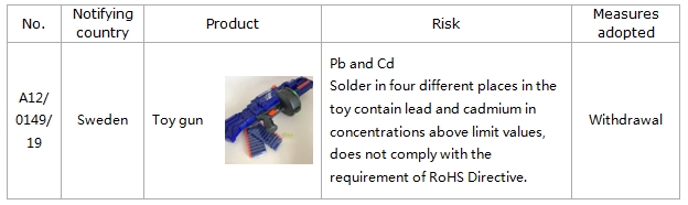 4) 1 product that does not comply with requirements of ROHS 2 were notified. Following are the detail information.