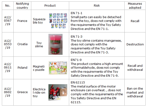 2)23 cases of products that do not comply with the requirements of the Toy Safety Directive were notified. Following are the detail information and part of examples.