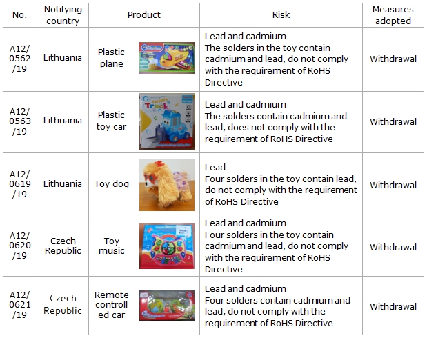 4) 5 products that do not comply with requirements of RoHS 2 were notified. Following are the detail information.