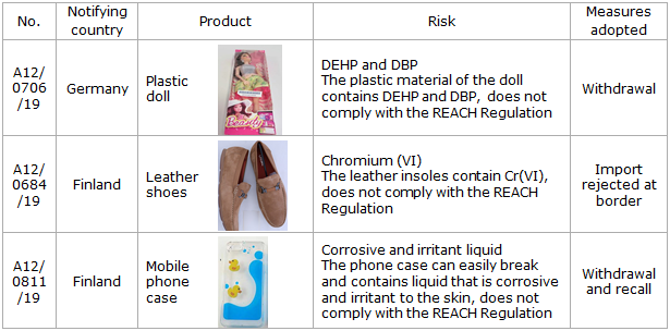1) 11 cases of products that do not comply with the requirements of REACH were notified. Following are the detail information and part of examples.