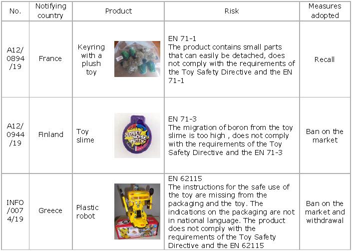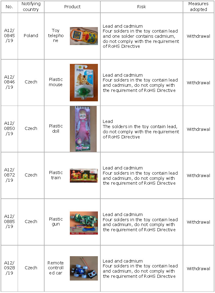 2)19 cases of products that do not comply with the requirements of the Toy Safety Directive were notified. Following are the detail information and part of examples.