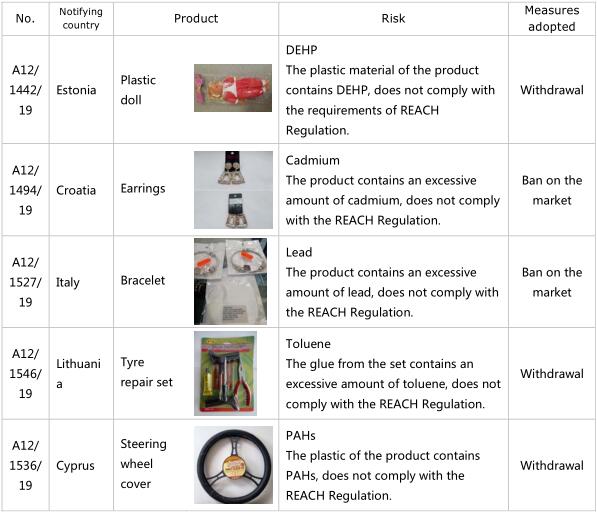 1) 24 cases of products that do not comply with the requirements of REACH were notified. Following are the detail information and part of examples.