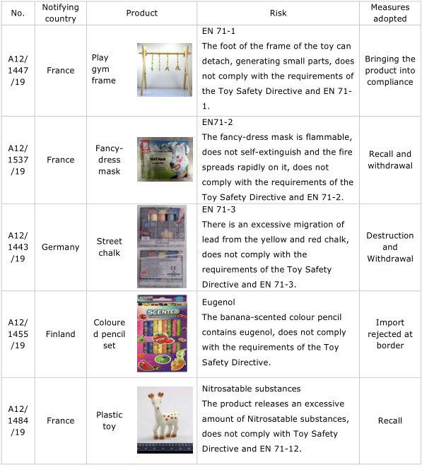 2)30 cases of products that do not comply with the requirements of the Toy Safety Directive were notified. Following are the detail information and part of examples.