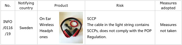 3) only one product that does not comply with regulation on persistent organic pollutants (POP Regulation) was notified. Following are the detail information.