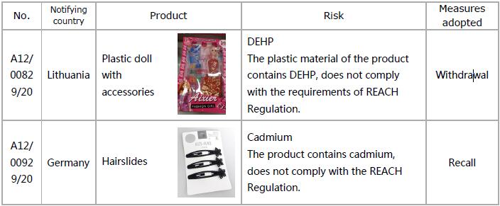 1) 6 cases of products that do not comply with the requirements of REACH were notified. Following are the detail information and part of examples.