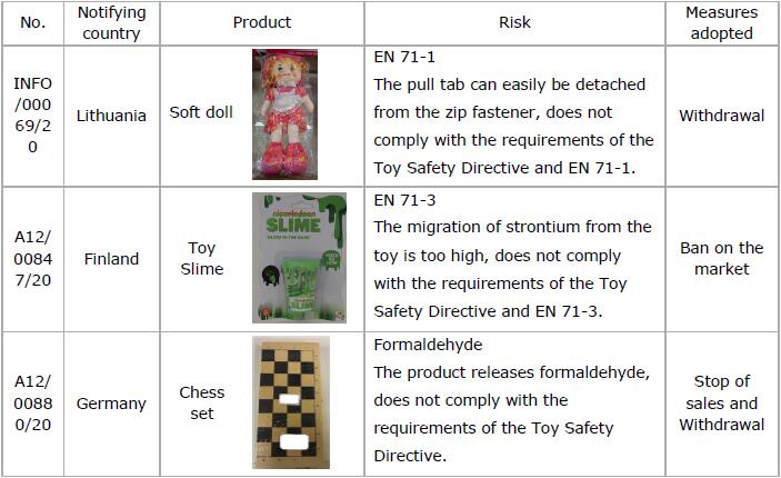 2)16 cases of products that do not comply with the requirements of the Toy Safety Directive were notified. Following are the detail information and part of examples.