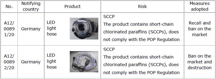 3) Two products that do not comply with regulation on persistent organic pollutants (POP Regulation) were notified. Following are the detail information.