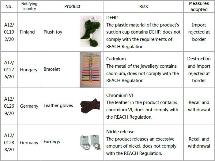 1) 12 cases of products that do not comply with the requirements of REACH were notified. Following are the detail information and part of examples.