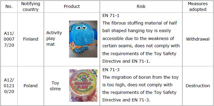2)10 cases of products that do not comply with the requirements of the Toy Safety Directive were notified. Following are the detail information and part of examples.