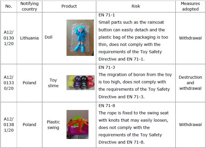 2)31 cases of products that do not comply with the requirements of the Toy Safety Directive were notified. Following are the detail information and part of examples.