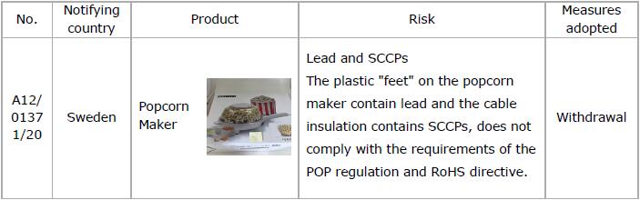 3) Only one product that does not comply with regulation on persistent organic pollutants (POP Regulation) and requirements of RoHS 2 was notified.