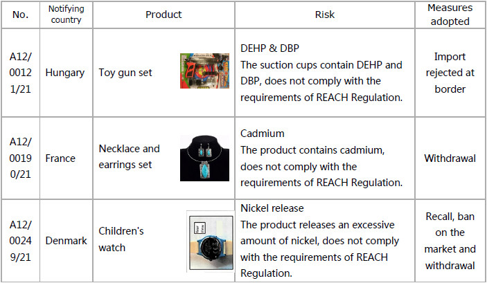 1) 13 cases of products that do not comply with the requirements of REACH were notified. Following are the detail information and part of examples.|