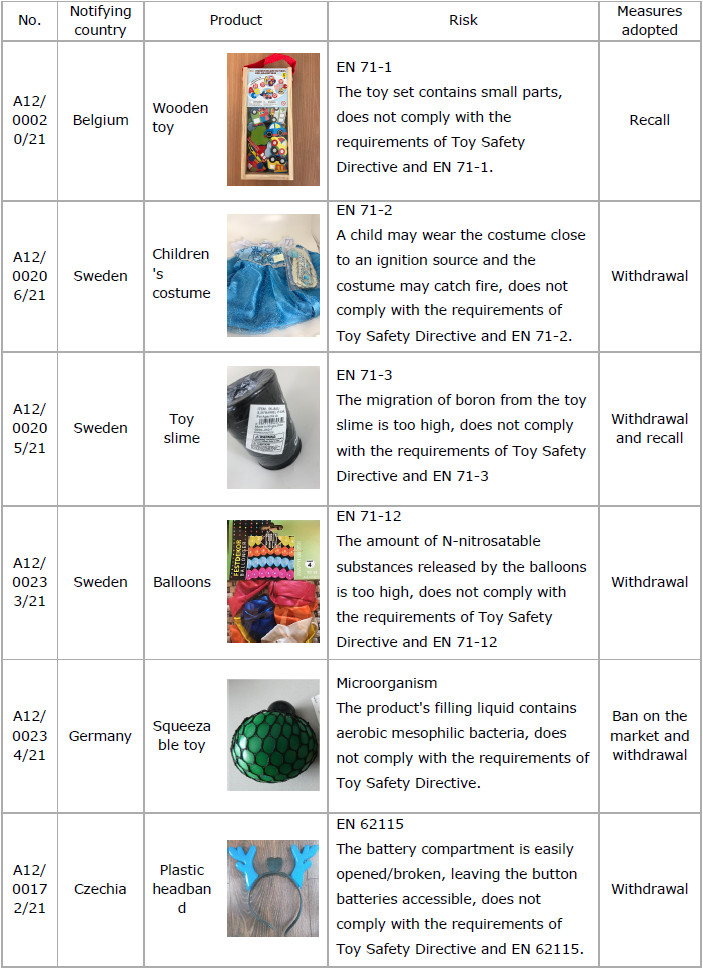 2)26 cases of products that do not comply with the requirements of the Toy Safety Directive were notified. Following are the detail information and part of examples.