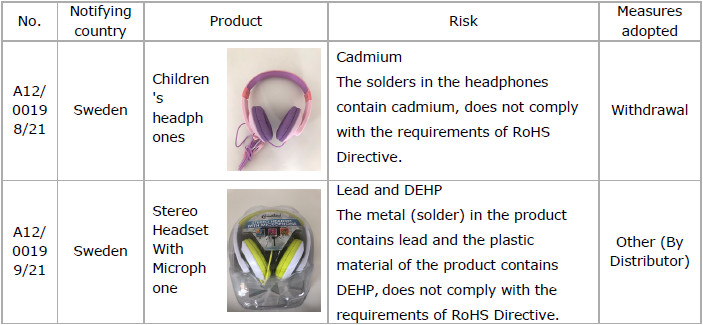 4) 5 products that does not comply with requirements of RoHS 2 were notified. Following are the detail information.