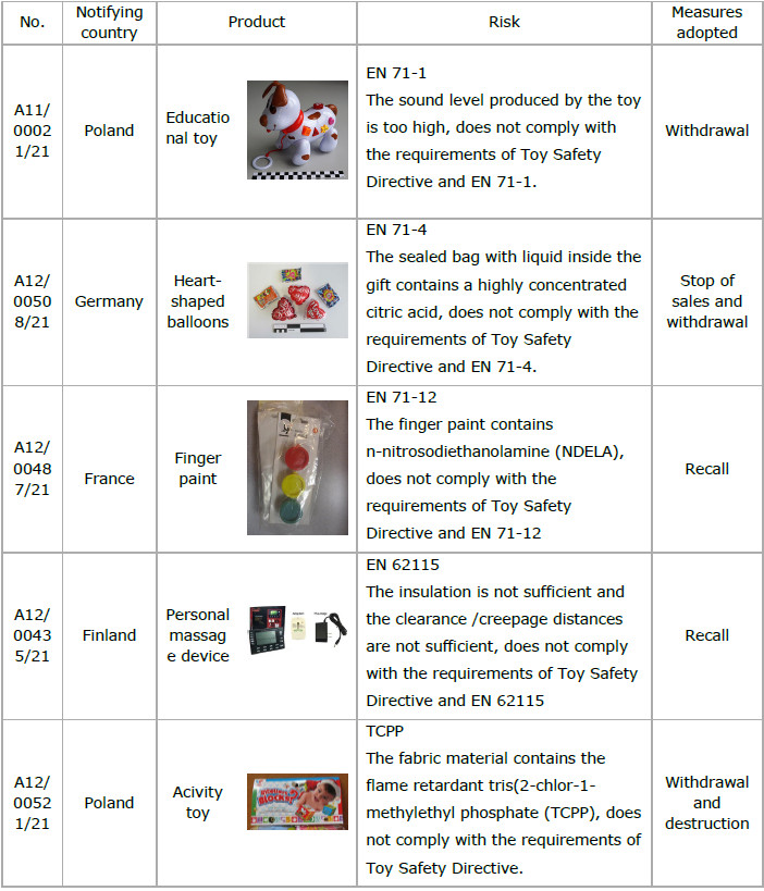 2)13 cases of products that do not comply with the requirements of the Toy Safety Directive were notified. Following are the detail information and part of examples.