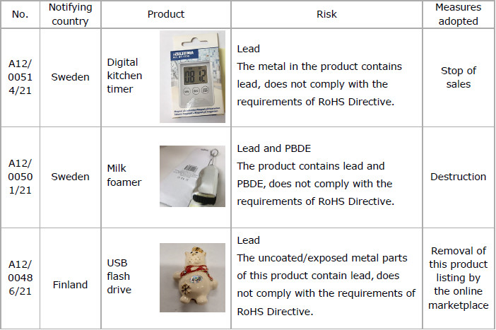 4) 6 products that does not comply with requirements of RoHS 2 were notified. Following are the detail information.