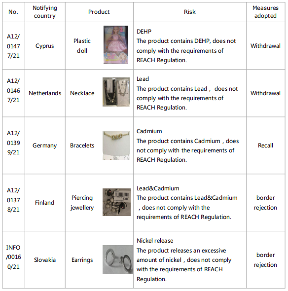 1) 16 cases of products that do not comply with the requirements of REACH were notified. Following are the detail information and part of examples.