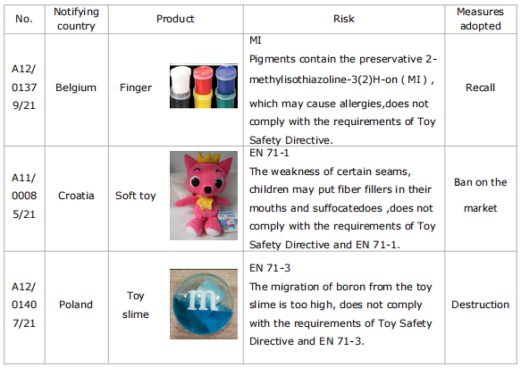 2)24 cases of products that do not comply with the requirements of the Toy Safety Directive were notified. Following are the detail information and part of examples.