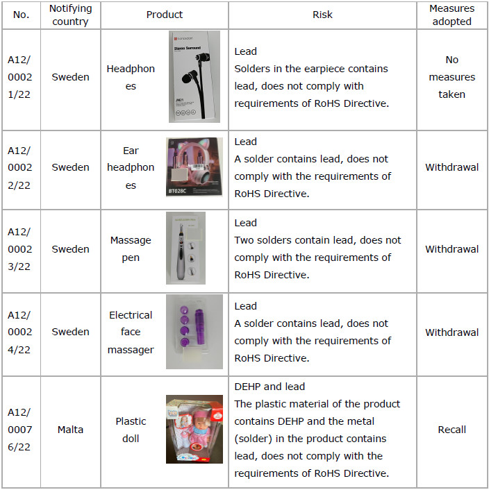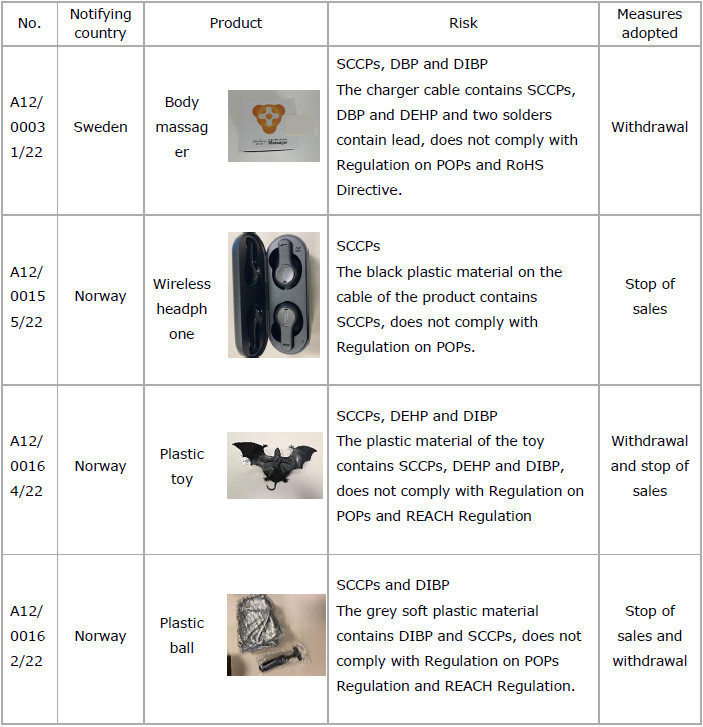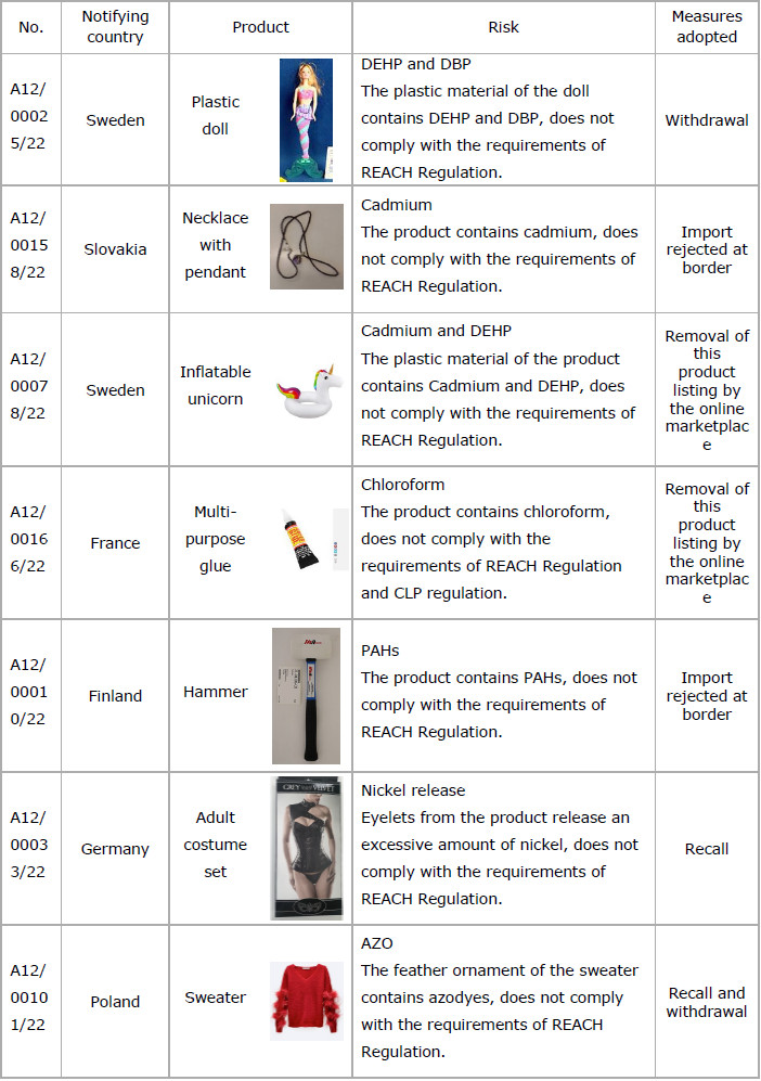 1) 22 cases of products that do not comply with the requirements of REACH were notified. Following are the detail information and part of examples.