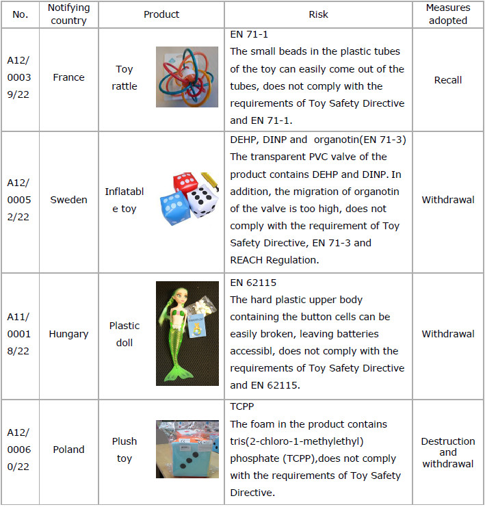 2)22 cases of products that do not comply with the requirements of the Toy Safety Directive were notified. Following are the detail information and part of examples.