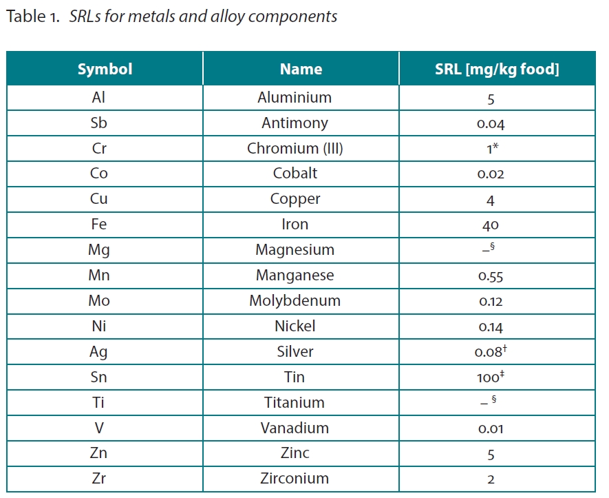 1. Chromium: the specific release limit (SRL) is set at 1 mg/kg (former limit: 0.250 mg/kg).