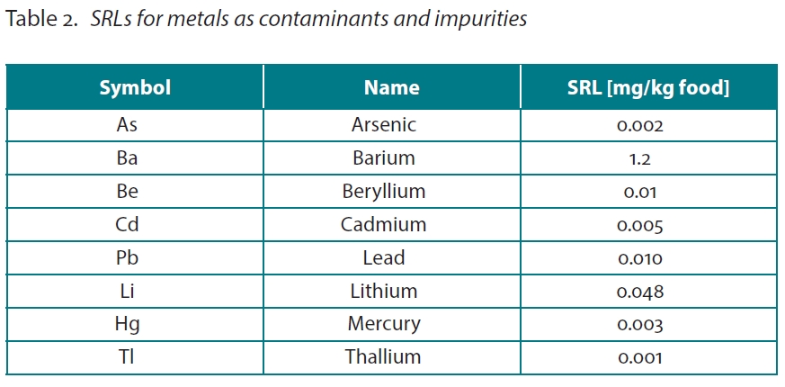 2. Manganese: the SRL is set at 0.55 mg/kg (former limit: 1.8 mg/kg).