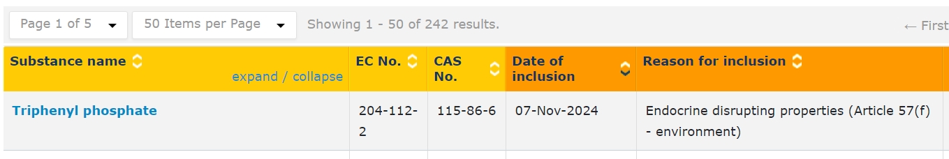 ECHA added 1 new substances to SVHC candidate list, now 242 in total