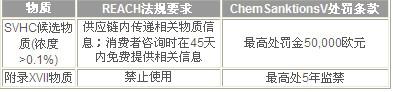 目前,德国环境署 (UBA)正在和非政府组织合作建立一个SVHC信息调查平台。登录该平台后,消费者只要输入产品的条形码,该平台将自动发送邮件给产品生产企业询问SVHC候选物质信息。预计该平台的建立会促使更多消费者关注产品中的SVHC候选物质,企业将面临越来越多的消费者咨询。 UBA近日特别提醒企业,德国一项新的化学品违规处罚条例(ChemSanktionsV)已于2013年5月生效,企业须确保产品符合欧盟REACH法规关于SVHC信息传递和附录XVII禁用物质的要求,否则将面临严厉处罚(见下表)。
