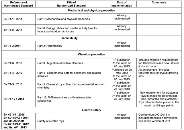 欧盟将EN 71-3:2013列入新玩具指令(2009/48/EC)协调标准中