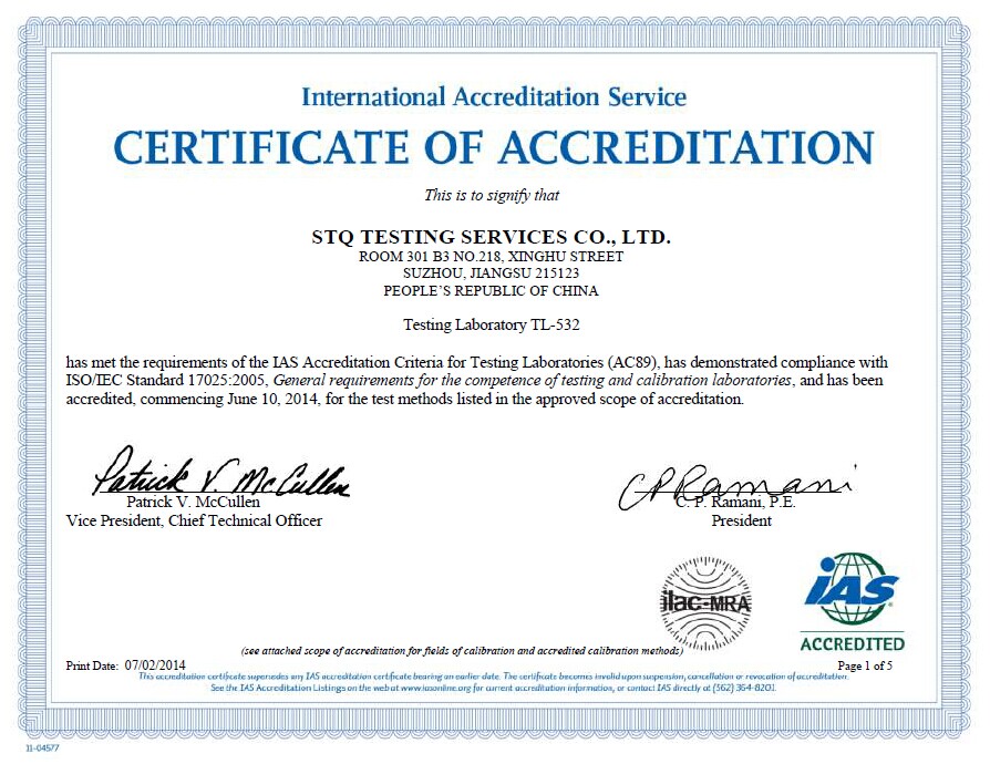 2014年3月25日至28日,我公司接受了IAS专家组的2014年度监督及扩项评审,在公司全体成员的共同努力下,我公司顺利通过了该次评审,并扩项成功。 同时,我公司也此次评审为契机,对公司内部存在的一些问题进行积极的整改,努力使得我公司的管理水平和技术水平得到进一步提高。 在未来的日子里,我公司将继续努力,蓬勃发展。