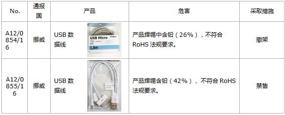 4.本月有2例违反RoHS法规的产品通报,详细信息如下: