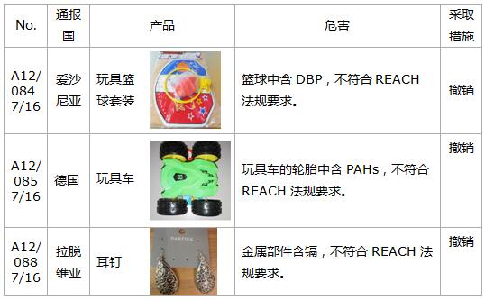 欧盟RAPEX系统通报--2016年7月 |
