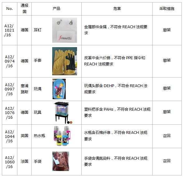 欧盟RAPEX系统通报--2016年 8月 |