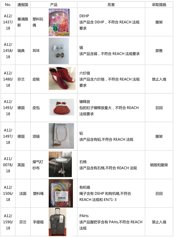 二、通报情况详解 1.本月共通报28例违反REACH法规的产品,详细信息及部分示例如下: