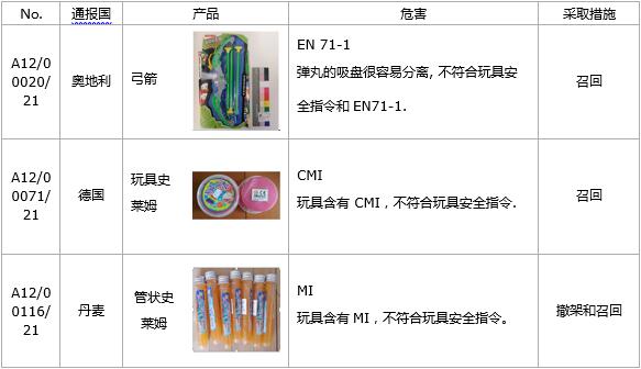 2.本月共通报12例违反玩具安全指令(2009/48/EC)的产品,部分示例如下: