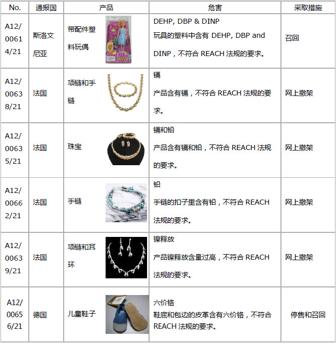 二、通报情况详解 1.本月共通报17例违反REACH法规的产品,详细信息及部分示例如下:
