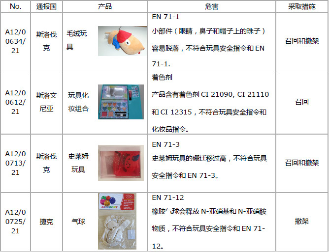 2.本月共通报17例违反玩具安全指令(2009/48/EC)的产品,部分示例如下: