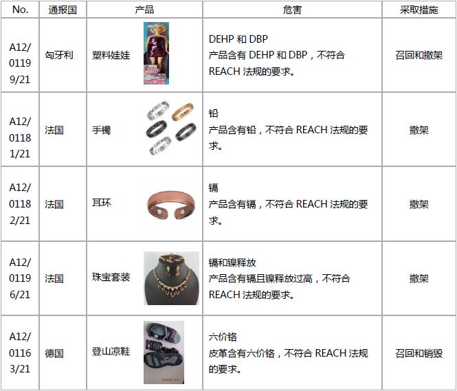 二、通报情况详解 1.本月共通报10例违反REACH法规的产品,详细信息及部分示例如下: